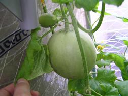 トマト、きゅうり、メロン、なす、バジル、シソ、ミントは今現在栽培中です。きゅうり、トマトはこの夏30本近く収穫しました。メロンは今7つ実が付いて大きくなっています。 水耕栽培は微量な液肥と水だけで、土で育てる2,3倍のスピードで育ちます。