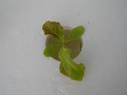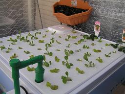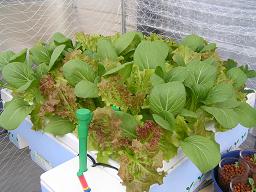 収穫時です。葉菜類は葉だけを少しづつちぎっていけば、新しい葉がどんどん後から生えてきます。ある程度収穫した後土に移植すればそのまま成長し、最後には花が咲いて、種がつきます。 |